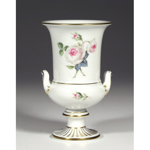 Vase, Weiße Rose mit Purpurkern, Goldrand, H 14 cm