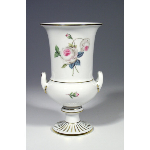 Vase, Weiße Rose mit Purpurkern, Goldrand, H 18,5 cm