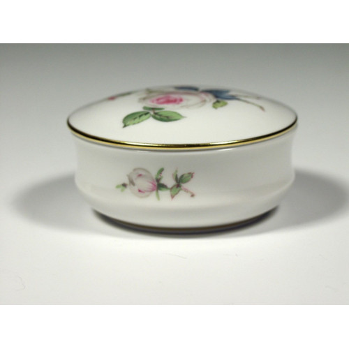 Dose, Weiße Rose mit Purpurkern, Goldrand, ø 7 cm