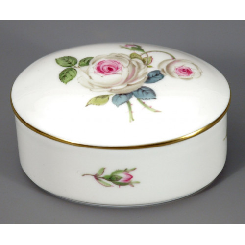 Dose, Weiße Rose mit Purpurkern, Goldrand, L 7 cm