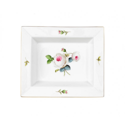 Vide-poche mittel, Weiße Rose mit Purpurkern, Goldrand, 16 x 13,5 cm