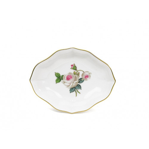 Schälchen, Weiße Rose mit Purpurkern, Goldrand, L 8 cm