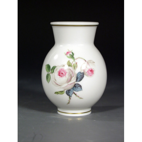 Vase, Weiße Rose, vielblättrig, purpur Kern, bunt, Goldfaden bzw. Goldreifen, H 8,5 cm