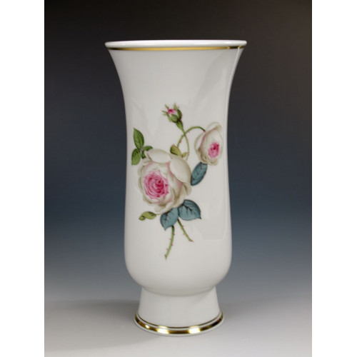Vase, Weiße Rose, vielblättrig, purpur Kern, bunt, Goldfaden bzw. Goldreifen, H 24 cm