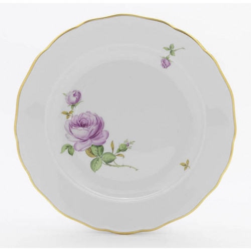 Speiseteller, Form "Neuer Ausschnitt", Rosenmalerei, violette Rose, vielblättrig, bunt, Goldrand, L 25 cm