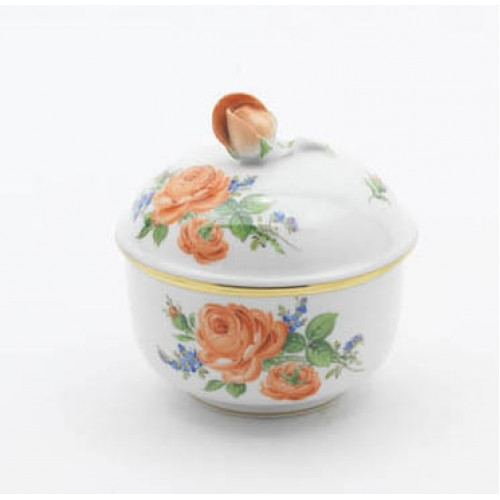 Zuckerdose, Rote Rose mit Vergißmeinnicht, bunt, Goldrand, Ø 9 cm