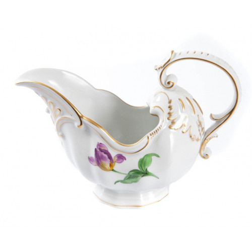 Sauciere, Form "Neuer Ausschnitt", Blume 1 mitte, bunt, Goldrand, V 0,40 l