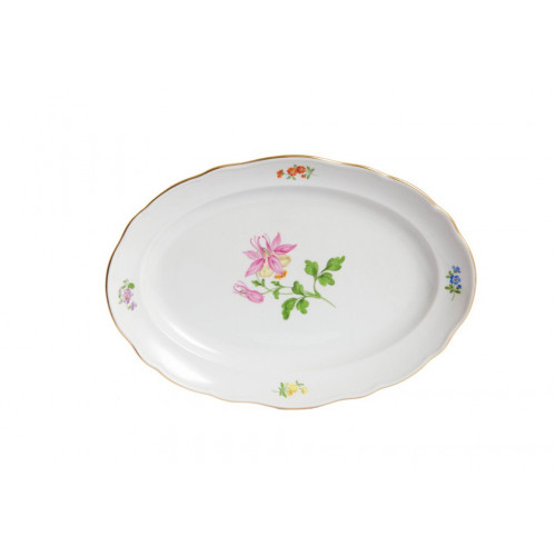 Platte, oval, Blume 1 mitte, bunt, Goldrand, L 28,5 cm