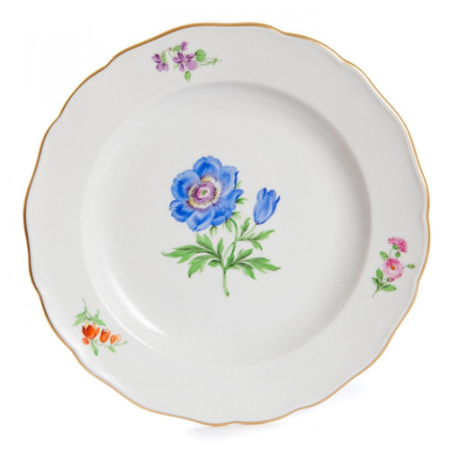 Speiseteller, Form "Neuer Ausschnitt", Blume 1 mitte, bunt, Goldrand, L 25 cm