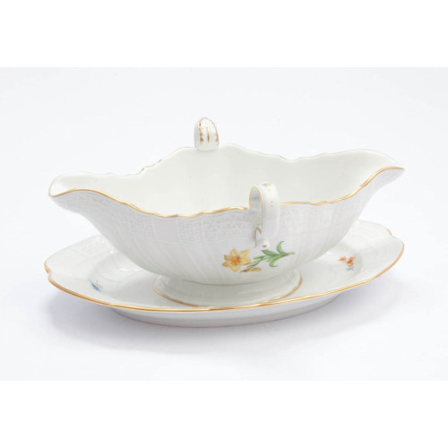 Sauciere 2 Henk. auf Schale, Blume 1 mitte, bunt, Goldrand, 0,5 l