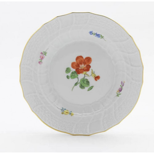 Teller, Blume 1 mitte, bunt, Goldrand, 18,5 cm