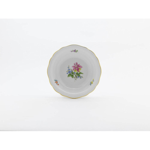 Kompottschüssel, Form "Neuer Ausschnitt", Blume 2 mitte, bunt, Goldrand, ø 16 cm
