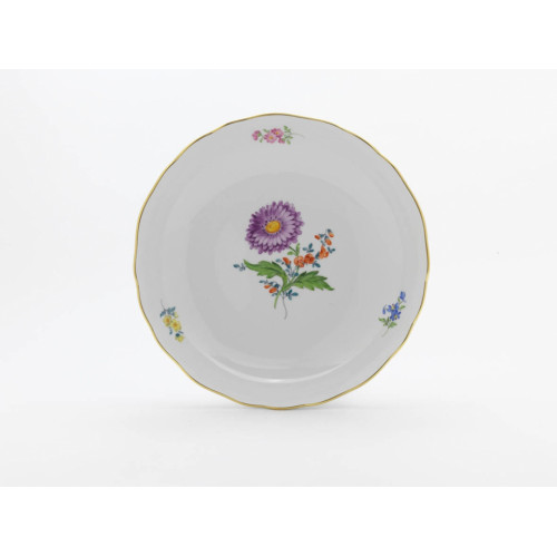Beilageschale rund, Form "Neuer Ausschnitt", Blume 2 mitte, bunt, Goldrand, ø 25 cm