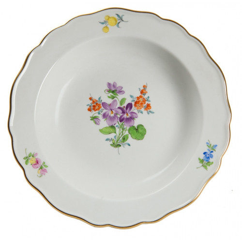 Suppenteller, Form "Neuer Ausschnitt", Blume 2 mitte, bunt, Goldrand, ø 17,5 cm