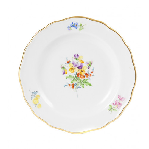 Teller, Form "Neuer Ausschnitt", Blume 2 mitte, bunt, Goldrand, ø 12 cm