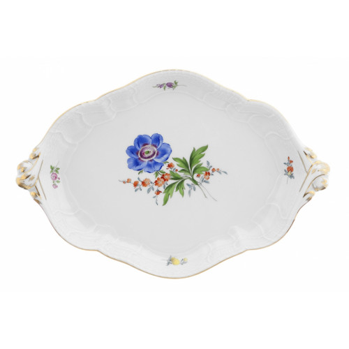 Beilageschale oval, Blume 2 mitte, bunt, Goldrand, 29x20 cm