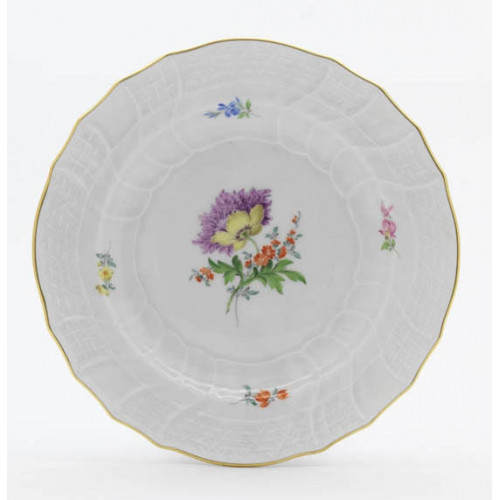 Teller, Blume 2 mitte, bunt, Goldrand, 18,5 cm