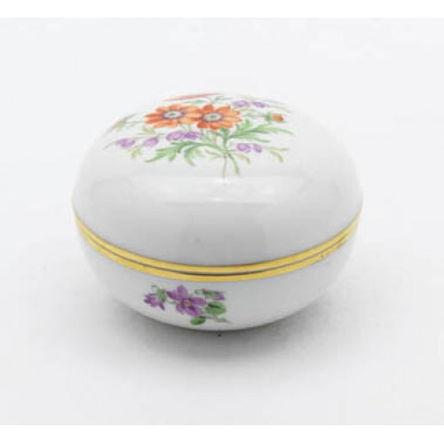 Dose, Blume 2 mitte, bunt, Goldrand, ø 7,5 cm