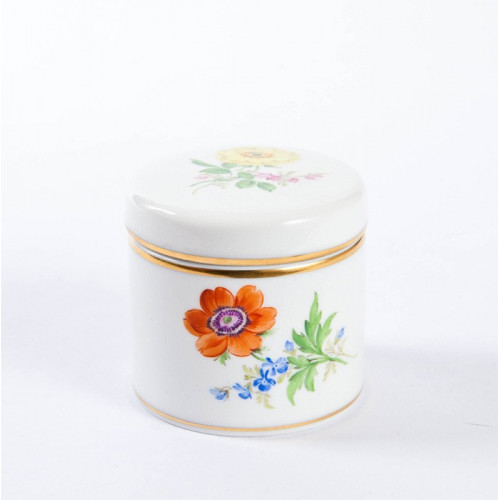 Dose, Blume 2 mitte, bunt, Goldrand, ø 6 cm