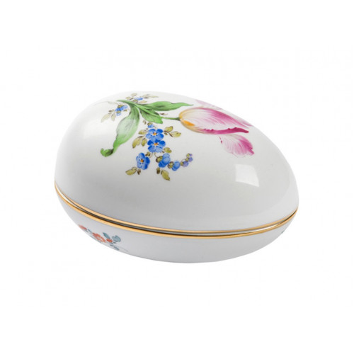 Dose, Blume 2 mitte, bunt, Goldrand, 12x8 cm