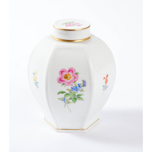 Teedose, Blume 2 mitte, bunt, Goldrand, 12,5 cm