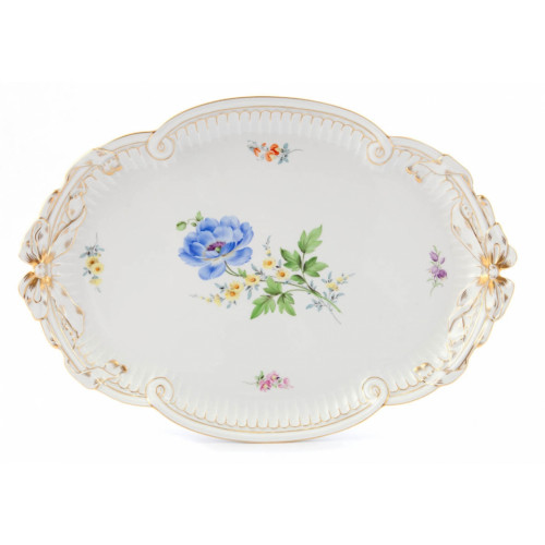 Platte, oval, Blume 2 mitte, bunt, Goldrand, L 40 cm