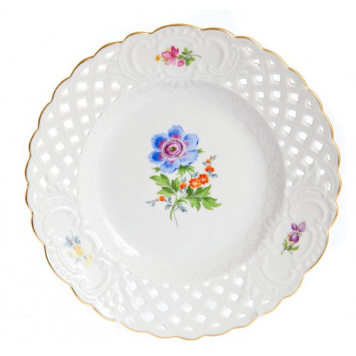 Teller, durchbr., Blume 2 mitte, bunt, Goldrand, ø 21 cm