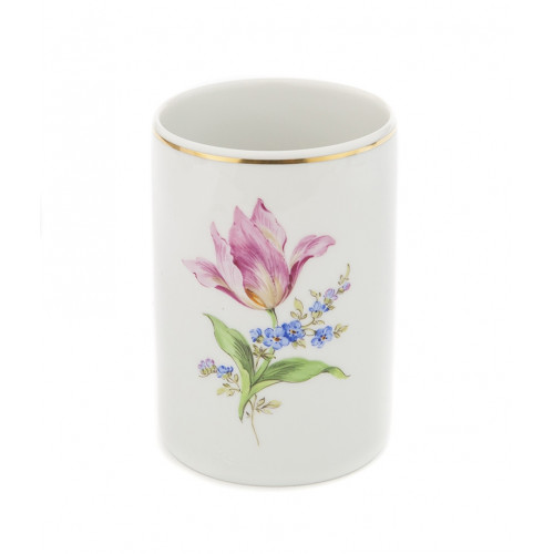 Vase, Blume 2 mitte, bunt, Goldfaden bzw. Goldreifen, H 9,5 cm