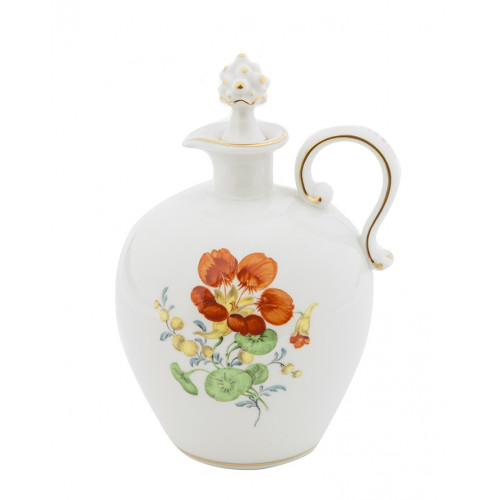 Likörflasche, Blume 2 mitte, bunt, Goldfaden bzw. Goldreifen, V 0,30 l