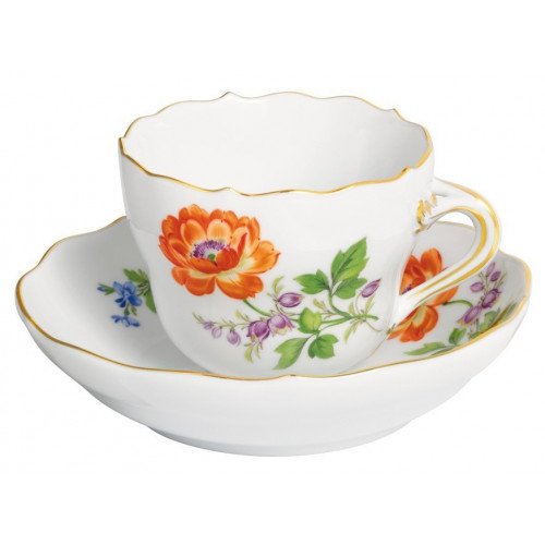 Espressotasse, Form "Neuer Ausschnitt", Vintage Blume 2,mitte, Motiv - Ranunkel,Goldrand, V 0,1 l