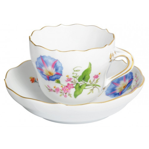 Espressotasse, Form "Neuer Ausschnitt", Vintage Blume 2,mitte, Motiv - Bandwinde,Goldrand, V 0,1 l