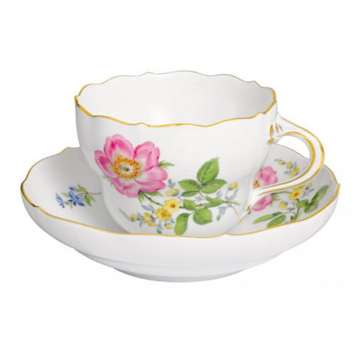 Kaffeetasse m.U., Form "Neuer Ausschnitt", Vintage Blume 2,mitte, Motiv - Heckenrose,Goldrand, V 0,20 l