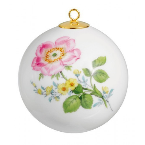 Kugel, Vintage Blume 2,mitte, Motiv - Heckenrose,Goldrand, ø 5 cm