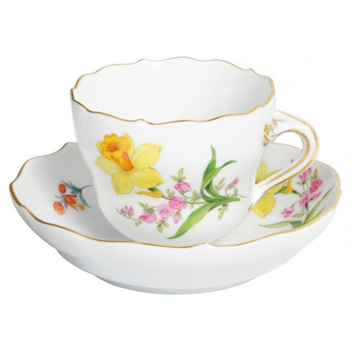 Espressotasse, Form "Neuer Ausschnitt", Vintage Blume 2,mitte, Motiv - Narzisse,Goldrand, V 0,1 l