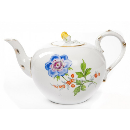 Teekanne, Form "Neuer Ausschnitt", Vintage Blume 2,mitte, Motiv - Anemone, Goldrand, V 1,00 l