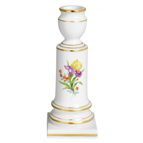 Leuchter, Form "Neuer Ausschnitt", Vintage Blume 2,mitte,bunt,Motiv - Schwertlilie, Goldrand, H 14 cm