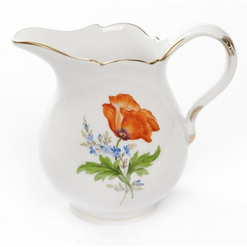 Milchkännchen, Form "Neuer Ausschnitt", Vintage Blume 2, mitte, bunt, Motiv - Feuermohn, Goldrand, V 0,15 l
