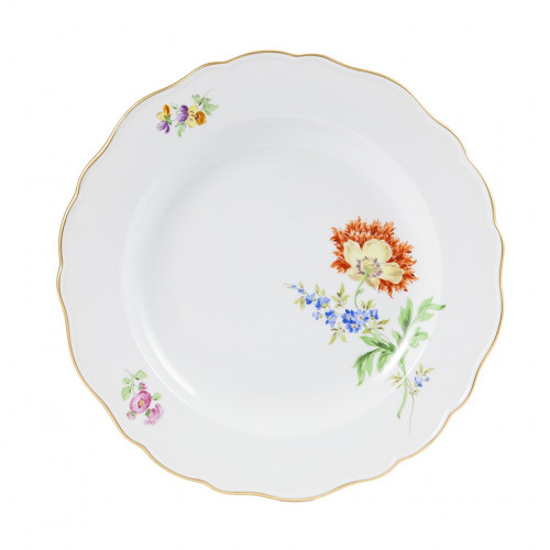 Teller, Form "Neuer Ausschnitt", Blume 2 schräg, bunt, Goldrand, ø 23 cm