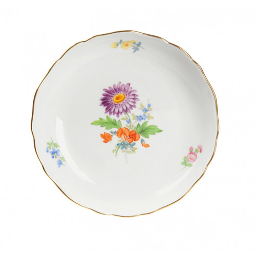 Dessertschale, Form "Neuer Ausschnitt", Blume 3 mitte, bunt, Goldrand, 19 cm
