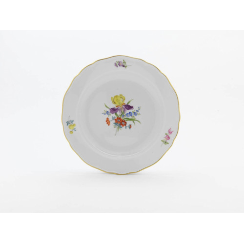 Teller, Form "Neuer Ausschnitt", Blume 3 mitte, bunt, Goldrand, ø 22 cm