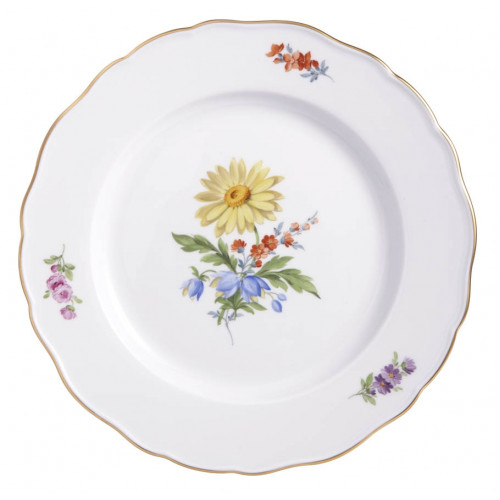 Speiseteller, Form "Neuer Ausschnitt", Blume 3 mitte, bunt, Goldrand, ø 28 cm