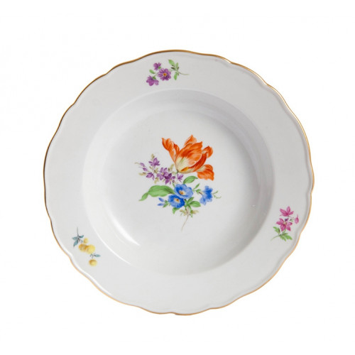 Teller, tief, Form "Neuer Ausschnitt", Blume 3 mitte, bunt, Goldrand, ø 19 cm
