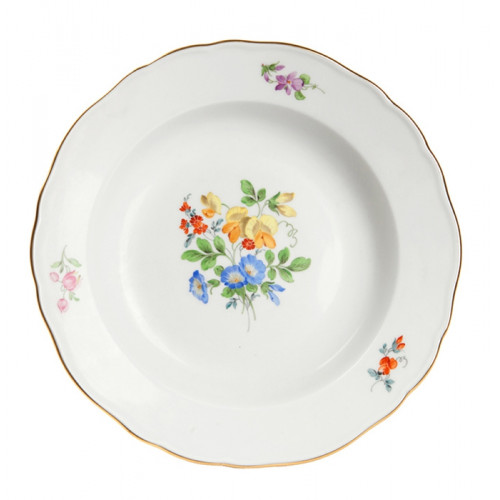 Teller, tief, Blume 3 mitte, bunt, Goldrand, ø 20 cm