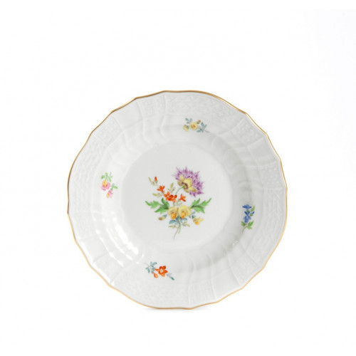 Teller,flach, Blume 3 mitte, bunt, Goldrand, 16 cm