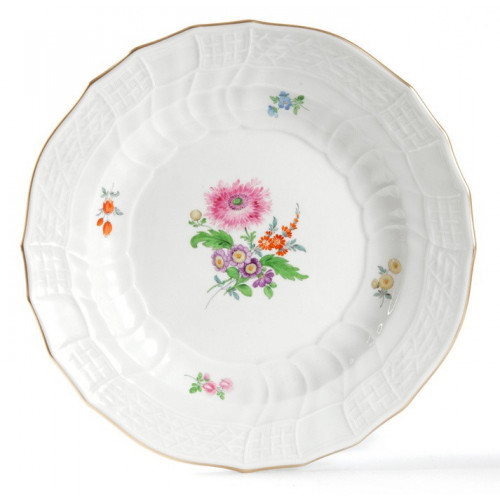 Teller, Blume 3 mitte, bunt, Goldrand, 18 cm