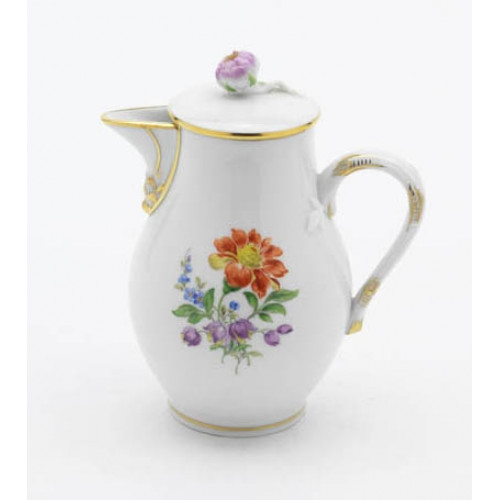 Gießer m.Deckel, Blume 3 mitte, bunt, Goldrand, 0,1 l