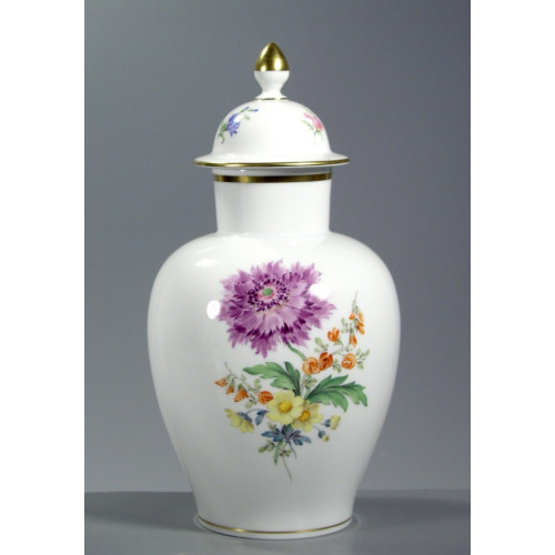 Vase, Blume 3 mitte, bunt, Goldrand, H 23 cm