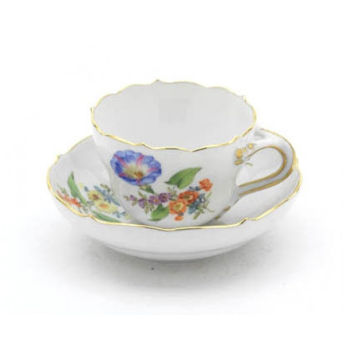 Miniaturtasse Neuer Ausschnitt, Blume 3 mitte, bunt, Goldrand, 0,04 l