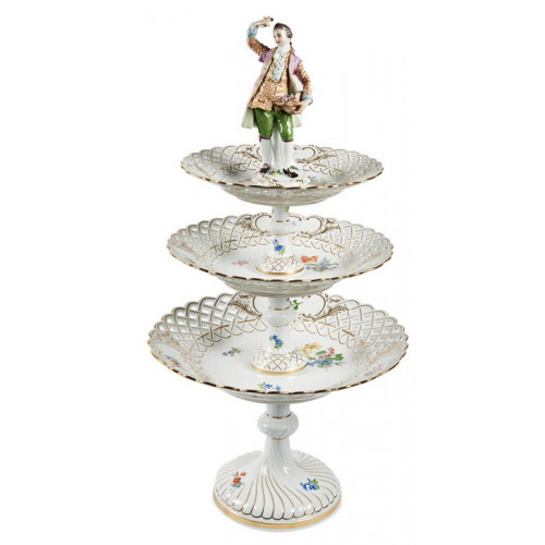 Etagere,durchbr. mit Gärtner, Blume 3 mitte, bunt, Goldrand und Goldstaffage, H 66 cm