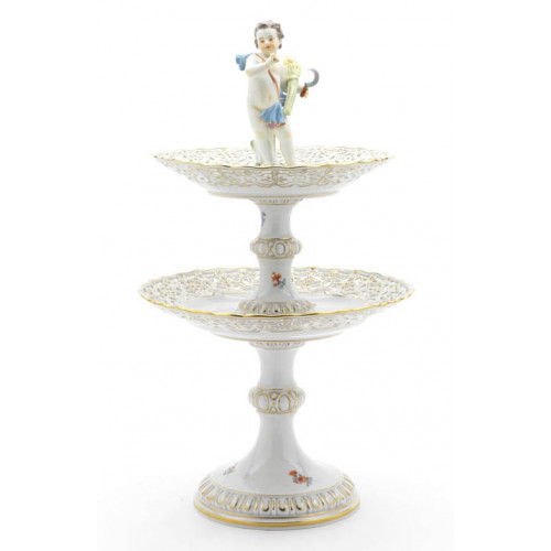 Etagere,durchbr. mit Sommer, Blume 3 mitte, bunt, Goldrand und Goldstaffage, 50,5 cm